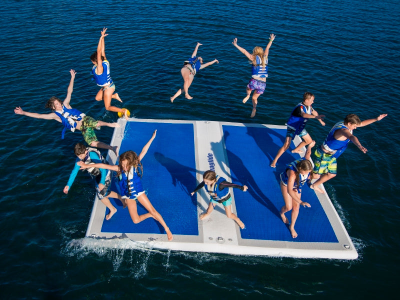 The ultimate multi-purpose pad makes for a great lounger or base camp from which to launch all your water-borne adventures. Made from our extremely durable Hard-Bottom material, this Landing Pad is built to last. It can also attach to our Docking Station and Ocean Pool products to help create the ultimate floating island. It can be used as a stand-alone item, or can be connected to any Aquapark using the five D-Ring Interloc system on all four sides, combined with our secure Vario-Lock cinch strap system.