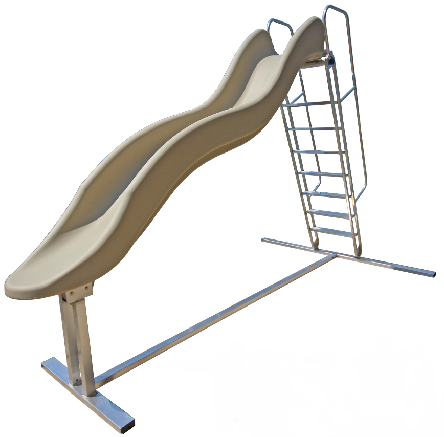 Shoreline Waterslides can be used as a freestanding tower of fun. They stand approximately 7' tall, with a base of approximately 10'. Waterslides from Shoreline Industries are available as a freestanding waterslide. Stands approximately 7' tall, with a base of approximately 10'. The front of the free standing slide is adjustable to accommodate varying water depths. The freestanding slide will provide hours of fun while standing on its own in the water.