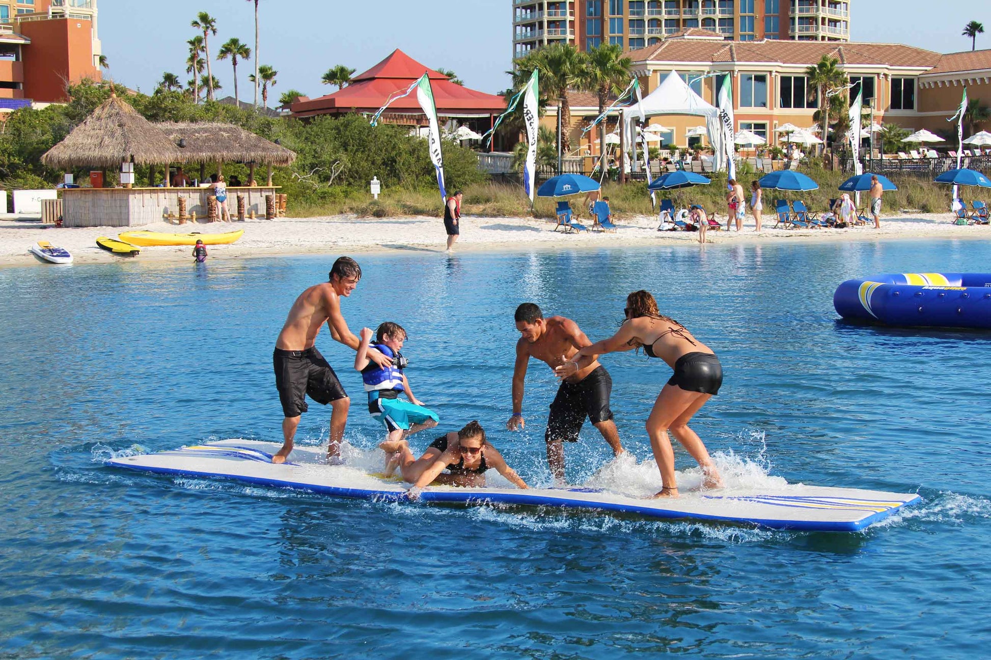 A flexible and slippery water- float or attachment. Inspiring continuous, creative free-play, the Splashmat uses technologically advanced Hardbottom (HB) material that is incredibly durable, yet extremely low profile which allows for easy boarding and maximum splash-factor. It can be used as a standalone item, or can be connected to any Aquapark using the 5 D-Ring Interloc system on two sides combined with our secure Vario-Lock cinch strap system.